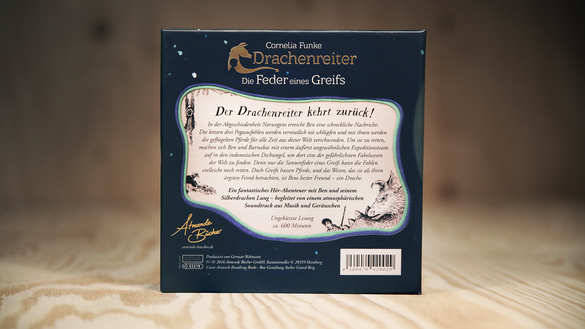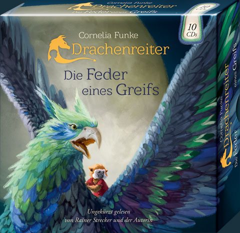 Vom norwegischen Wald in den wilden Dschungel Indonesiens: Rainer Strecker leiht auch in der Fortsetzung von »Drachenreiter« den Figuren Ben, Barnabas und Lung seine Stimme. Vor einer einmaligen Klangkulisse lädt der Schauspieler und Sprecher zu einer fantastischen Reise für die Ohren ein und wechselt mühelos vom tief grollenden Fjordtroll zum lispelnden Winzling Fliegenbein. Cornelia Funke entführt uns mit einem bewegenden Vorwort in ihre Geschichte „Drachenreiter – Die Feder eines Greifs“ und übernimmt den Part von Guinever und Vita Wiesengrund, Bens Schwester und Mutter.